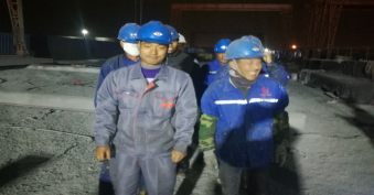 深秋的夜间寒风卷起了尘土,漫天扑来,但在这股施工热潮前已然没有丝毫威力。晚上8、9点钟的仓储项目各施工区域在投光灯的照射下明亮异常,储罐焊接产生的弧光在焊工师傅精准的控制下画出一道道饱满、细密的焊缝;防腐场内二十余名施工人员,正有条不紊地忙着对钢板抛丸除锈和油漆喷涂;工人师傅们脸上挂着的汗滴,他们顾不得洗、顾不得擦,脚踏实地的在云顶国际仓储这片沃土上耕耘。