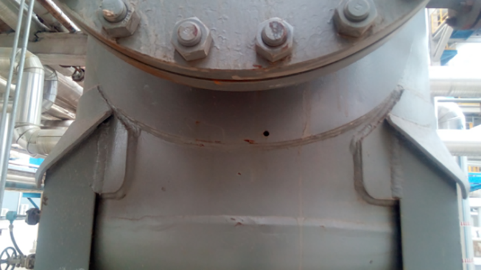 压力容器是炼油化工装置上常见的特种设备,在设备检查时总是会看到在人孔补强圈的底部有一个小孔,仔细观察的话是一个带有内螺纹的小孔。那么为什么人孔补强圈上会有这个小孔?这个小孔又有什么作用呢?带着这样的问题,在请教老员工并且查阅相关资料后得知,这个小孔叫做检漏孔,在TSG-R0004-2009《固定式压力容器安全监察规程》第五十一条:压力容器上的开孔补强圈以及周边连续焊的起加强作用的垫板应当至少设置一个信号泄漏指示孔。在设备制造时主要有两个作用,一是补强圈在满焊的情况下作为排气使用,二是在焊接完成后通气检查焊道是否泄漏。在JBT4736-2017《补强圈钢制压力容器用封头》5.9条:由M10螺孔通入0.4MPA—0.5MPA的压缩空气,检查补强圈连接焊缝的质量,角焊缝不得有渗漏现象。此条在GB150.4-2011的11.3中也有所体现。在运行时的主要作用就是检测焊缝的泄漏情况,及时发现泄漏及时处理。